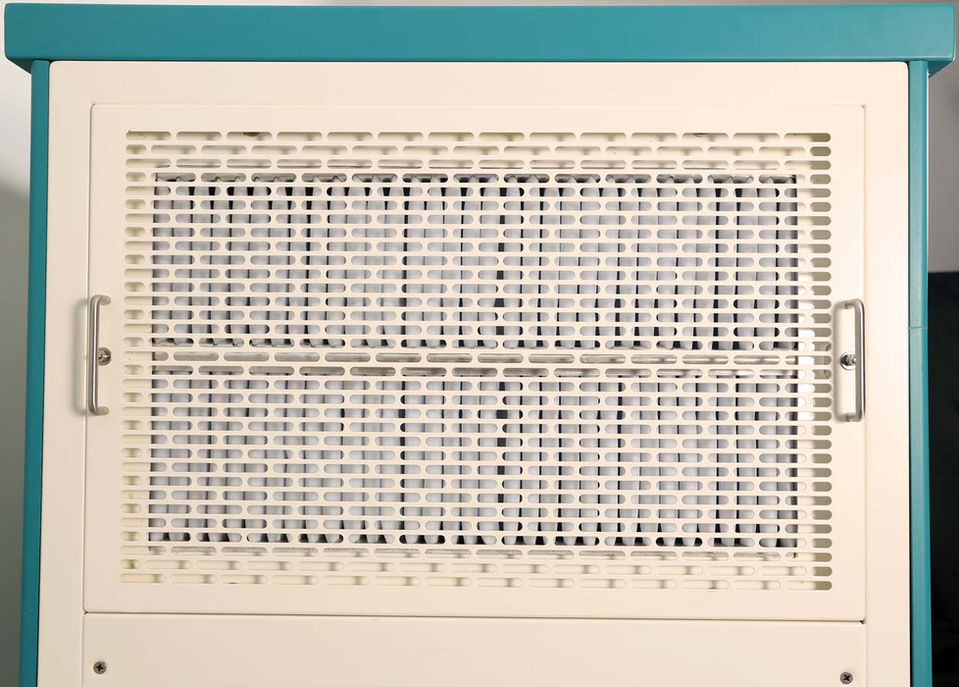 Perforated Stainless Steel diffuser screen, protects the HEPA filter and maintains uniform airflow velocity within the work area. Easy disassembly for access through a small door.